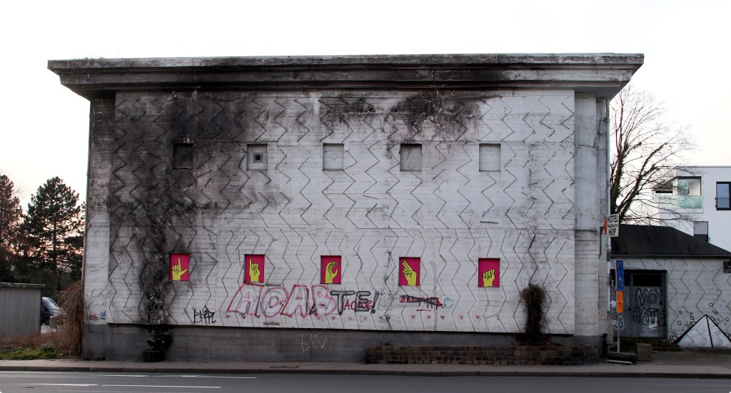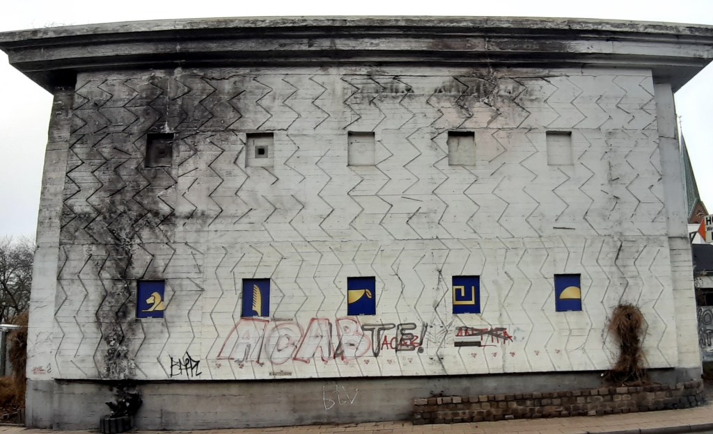 Die aktuelle Installation nimmt direkten Bezug auf die ursprüngliche Absicht, durch die Fassadengestaltung des Hochbunkers aus dem Jahr 1944 den Eindruck zu erwecken, es handele sich um ein ziviles Gebäude. In naher Zukunft wird der Bunker – dann tatsächlich zu einem Wohnhaus umgewandelt – durch die geplante Überbauung einen zeitgemäßen Baukörper erhalten.