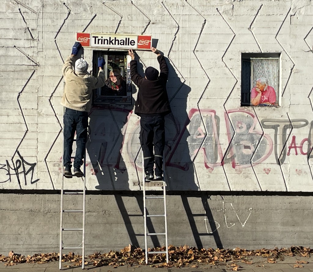 Mit dieser dritten Installation des BunkerArtProject2022 gelingt die Verwandlung durch die Inszenierung einer Straßenszene, die in keinem Ruhrpott-Nostalgie-Fotoband fehlen würde.